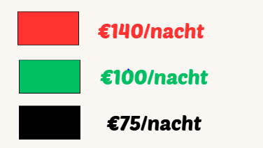Bij aankomst zijn jullie welkom vanaf 16u, vertrek steeds om 10u.