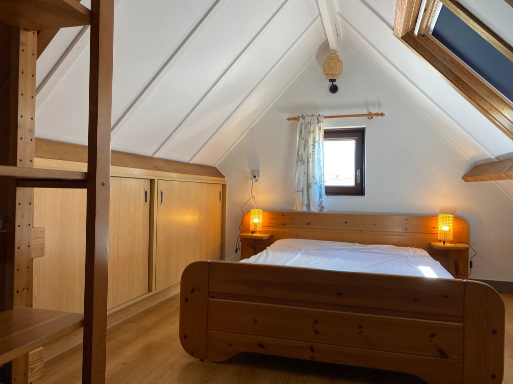 - Slaapkamer met dubbelbed, driedeurskast en opberglade