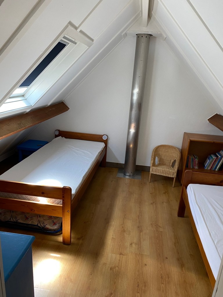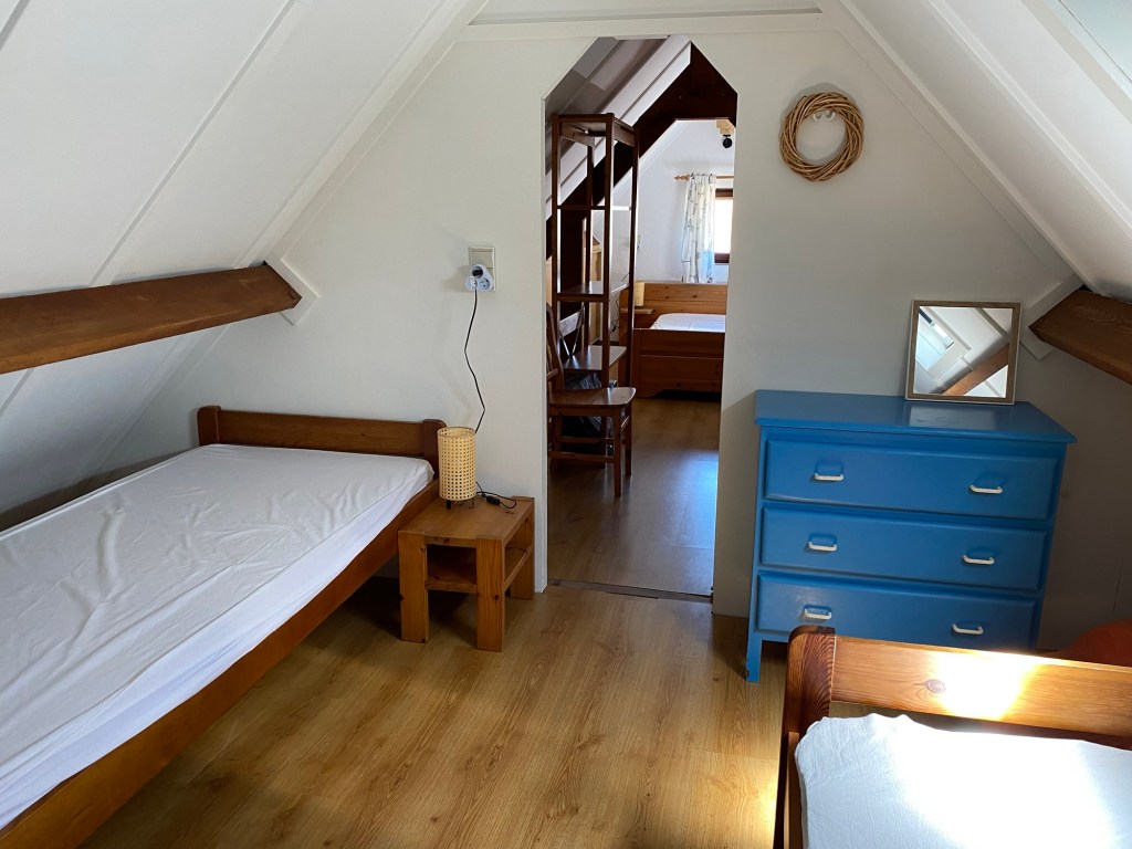 - Slaapkamer 2 met twee enkelbedden en zithoekje met kinderboeken